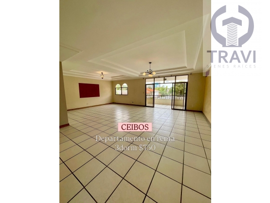 Se alquila cómodo departamento en 3er piso en Ceibos. Cerca de centros comerciales, Supermaxi, Gasolineras, Colegios, Universidades.